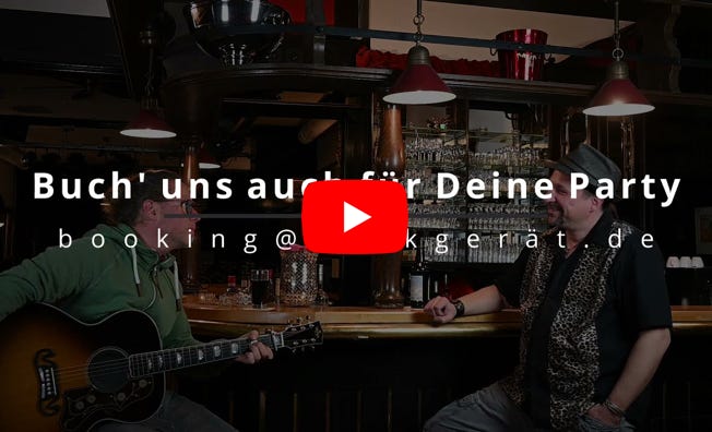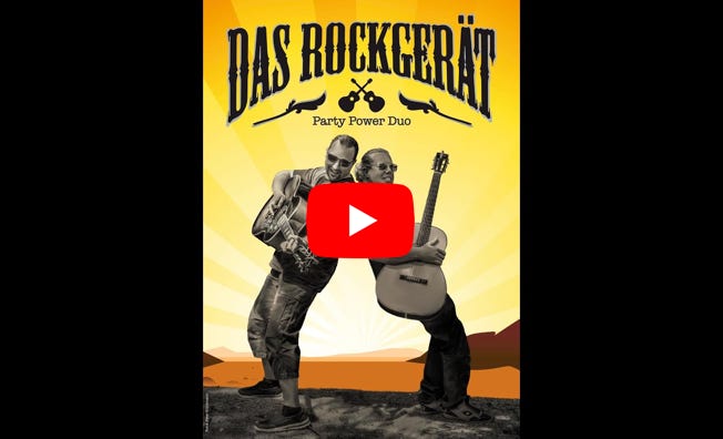 2 Stimmen, 2 Gitarren, Ukulele, Harp und Drums: Das ist „Das Rockgerät“ - 2 Mann mit dem druckvollen Sound einer ganzen Band. Mit ihrer Two Man Show bringen sie jede Party zum Kochen. Die großen Hits der 80er, 90er, 00er und NDW im unverkennbaren Rockgerät Style stehen für Spaß und beste Stimmung. Feiern, Mitsingen und Tanzen ist hier ausdrücklich erwünscht. Ebenso finden Evergreens aus Country und Rock‘n‘Roll ihren Platz. Das Rockgerät steht seit 2018 für beste Live Musik und gelungene Konzerte, Partys & Events.